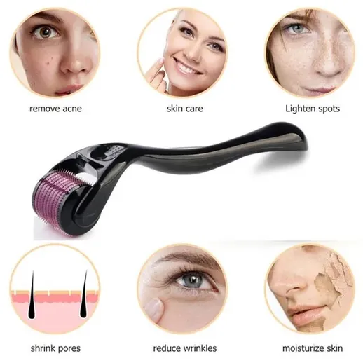 0.5mm 540 titanium needle derma roller for painless at-home microneedling on face and body.