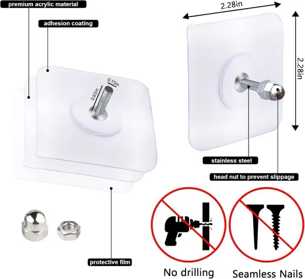 Organize your space easily with these Adhesive Screw Sticker Hooks. Designed to look like screw-in wall hooks, these clever tools use strong adhesive backing to securely stick to smooth surfaces like tiles, glass, metal, or wood—no drilling or tools required!