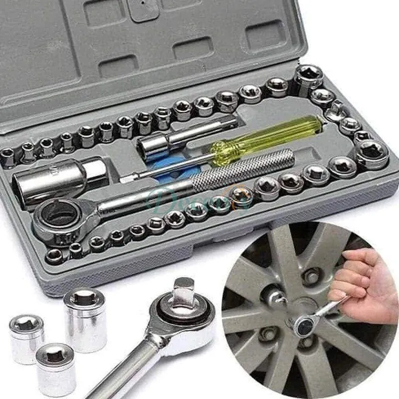 This Aiwa 40-piece socket wrench and screwdriver set provides a versatile collection of tools for various repair and maintenance tasks. Includes sockets, bits, a ratchet handle, and more, all in a compact case.