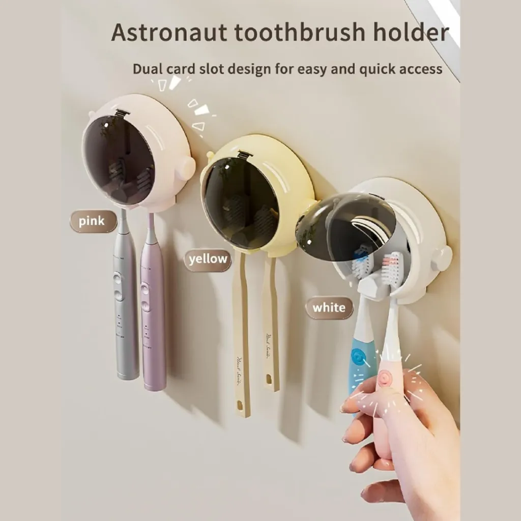 The unique astronaut cartoon design is perfect for kids and space lovers, turning brushing time into fun time. Made with durable, waterproof plastic, it keeps toothbrushes clean, dry, and organized. Ideal for modern bathrooms where both style and hygiene matter.