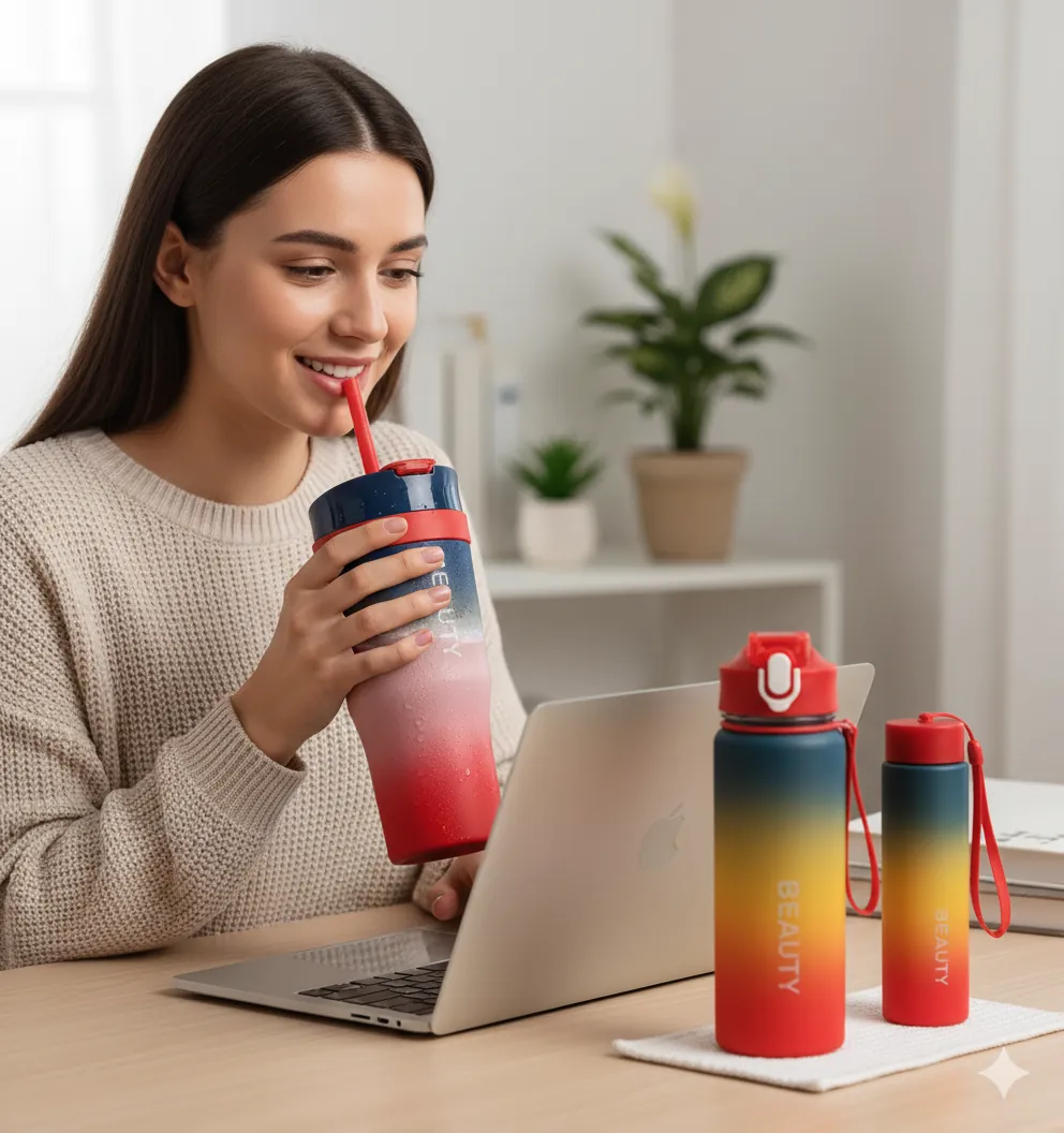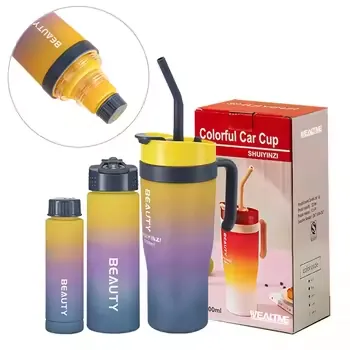 Stay stylishly hydrated with the Beauty Gradient Insulated Water Bottle. Featuring a vibrant multi-color design, durable stainless steel construction, and a convenient leakproof straw lid. Keeps your drinks ice-cold for 24 hours or hot for 12 hours. Perfect for the gym, office, or your next adventure.