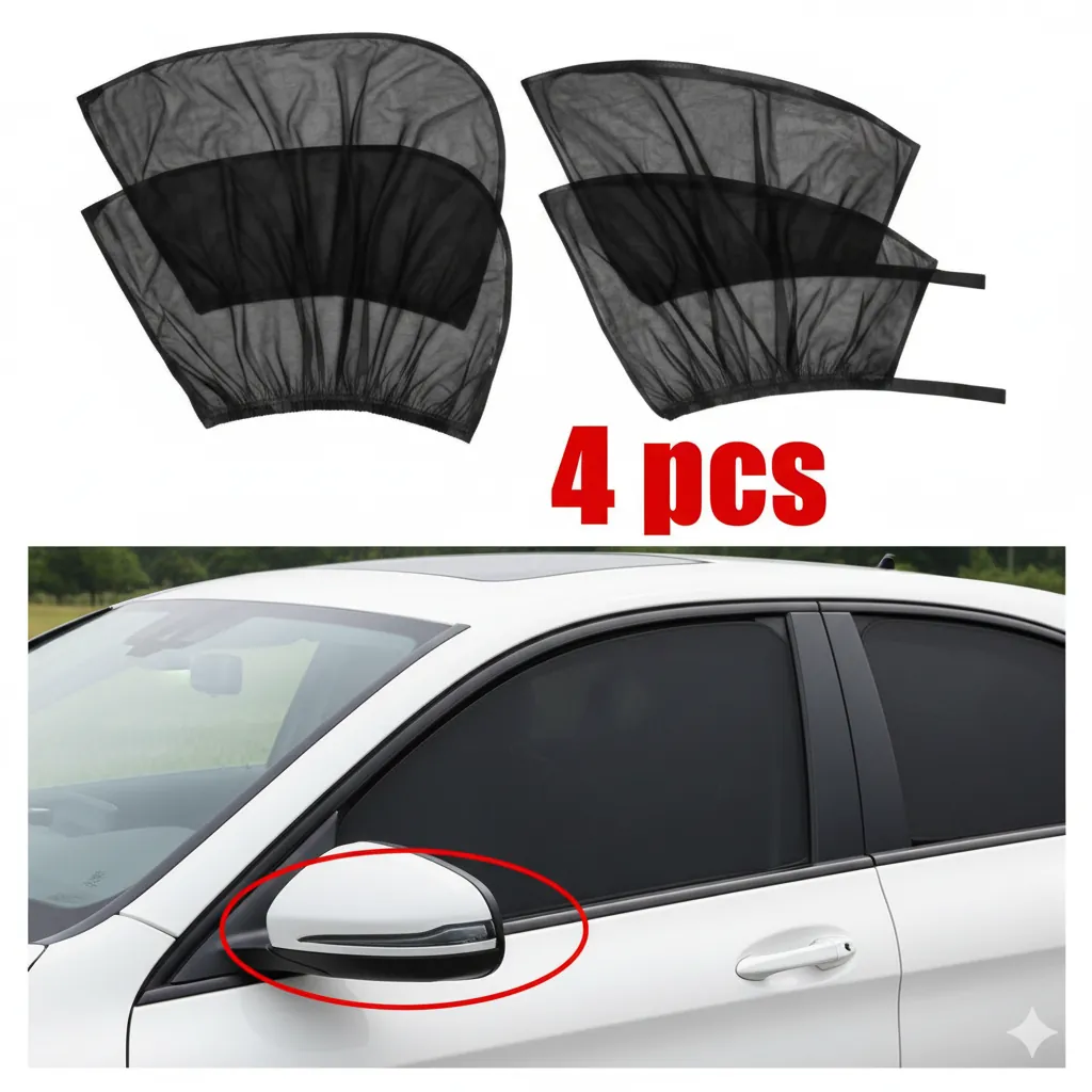 This set includes four car window sun shades specifically designed for the front side windows of your vehicle. Made from a high-quality black mesh material, these sunshades effectively block harmful UV rays, helping to protect your skin and your car's interior from sun damage. They also significantly reduce glare, making driving more comfortable, especially during bright sunlight. The breathable mesh allows for airflow, and the design maintains visibility from inside the car. These sunshades are easy to install and remove, offering a convenient solution for sun protection during your travels.