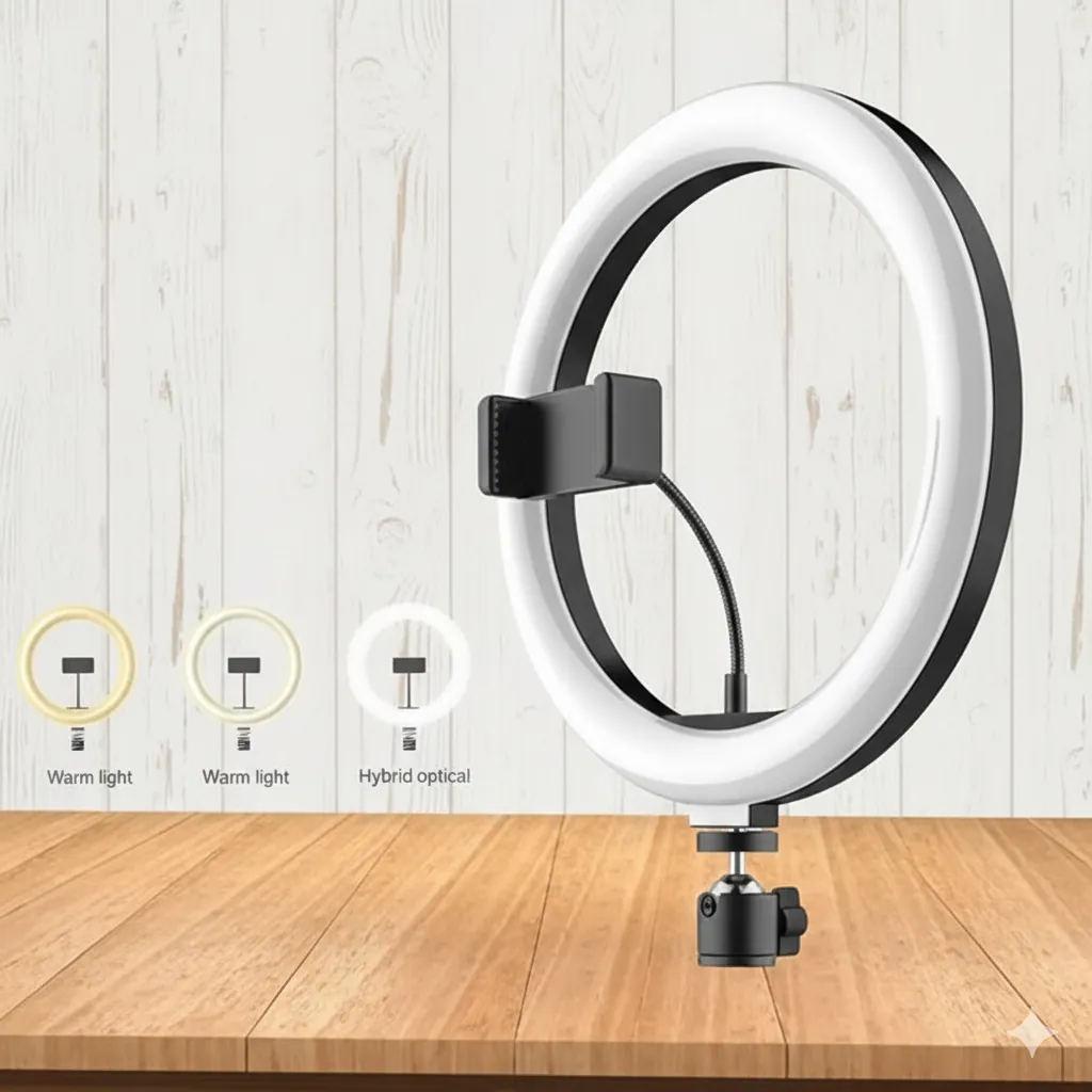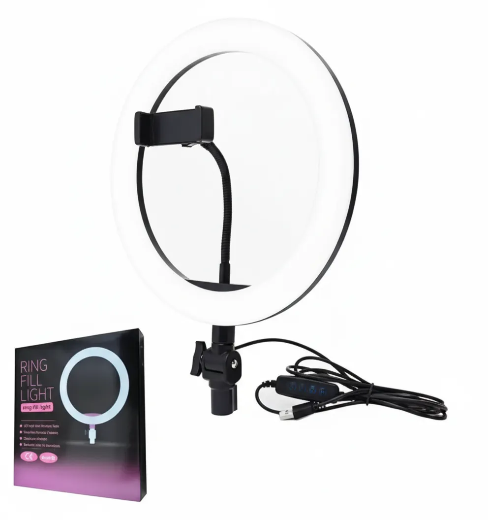 The 26cm LED ring light is a versatile lighting solution designed to enhance your photos and videos. It emits a soft, flattering light that minimizes shadows and imperfections, making it ideal for makeup tutorials, portrait photography, video calls, and live streaming. Typically powered via USB, it can be easily connected to a computer, laptop, power bank, or wall adapter. Many models offer adjustable brightness levels, allowing you to customize the lighting to your specific needs. Its lightweight and portable design make it easy to set up and transport.