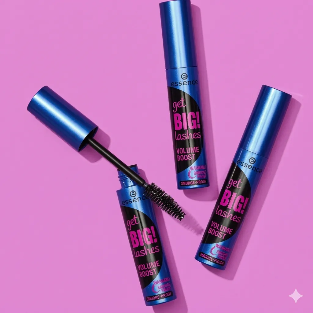 The Essence Get Big! Lashes Volume Boost Mascara, a waterproof formula by Essence, adds dramatic volume to your lashes. Perfect for a bold look in 2025!