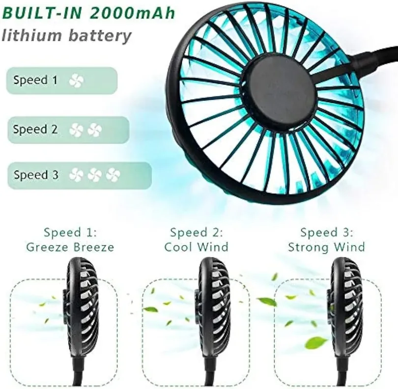 Stay cool hands-free with this portable USB rechargeable neck fan. Featuring 360° adjustable airflow and 3 speeds, it's lightweight and perfect for summer activities.