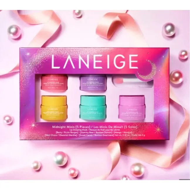 "Experience ultimate lip hydration with the LANEIGE Midnight Minis 5-Piece Lip Sleeping Mask Set. This K-beauty favorite features mini versions of the iconic lip masks, delivering intense moisture overnight for smooth, plump lips. Perfect for travel or discovering new flavors."