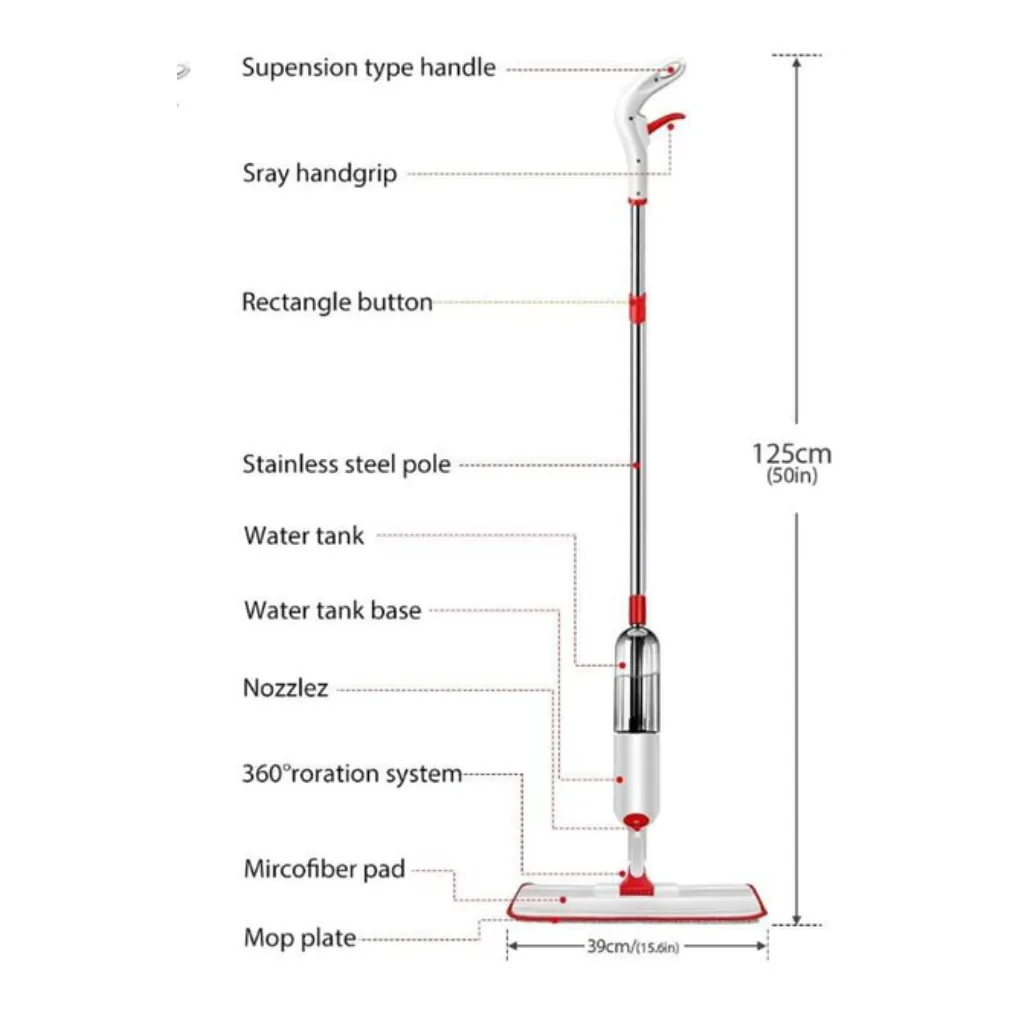 Effortlessly clean your floors with our 360° Rotating Spray Mop. Featuring a swivel head for easy maneuvering and a refillable bottle for your favorite cleaning solution. The microfiber pad effectively lifts dirt and grime, leaving floors sparkling clean.
