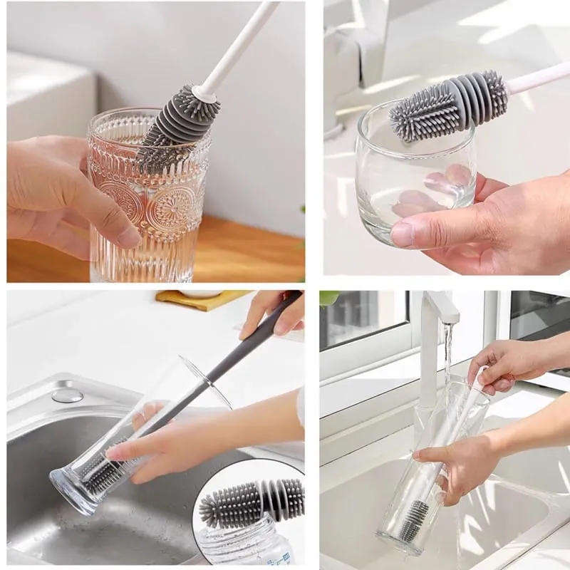 Soft Silicone Bristles: Ensures scratch-free cleaning on all surfaces (glass, plastic, stainless steel).