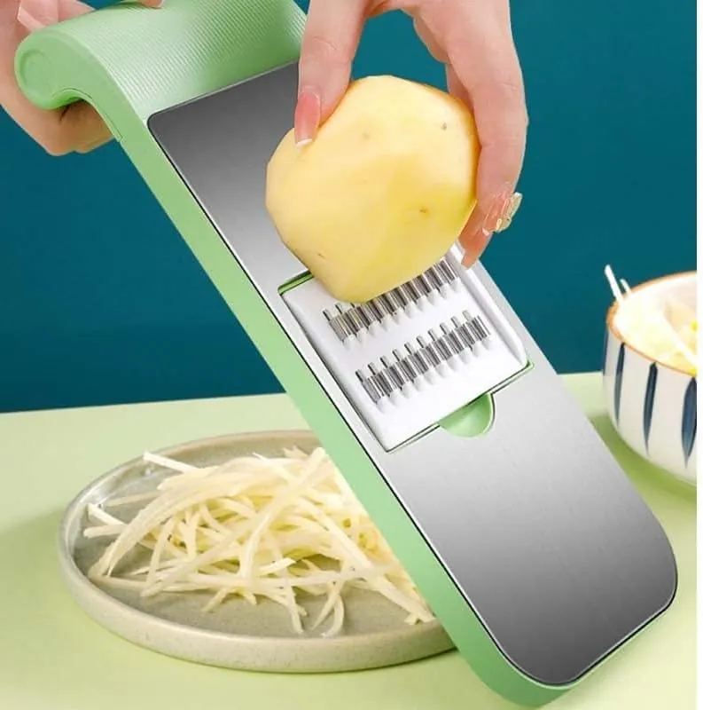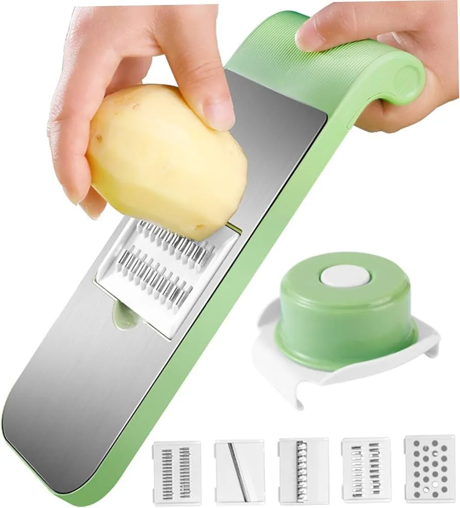 Upgrade your kitchen experience with this Manual Food Grater and Slicer, designed to make meal prep faster, easier, and safer. Equipped with ultra-sharp stainless steel blades, it effortlessly slices, shreds, and grates a wide variety of ingredients including carrots, cucumbers, cheese, potatoes, apples, and more.