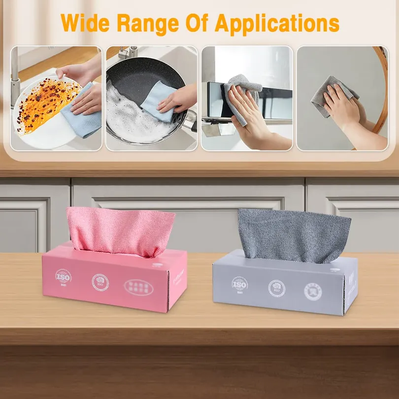 Made from premium microfiber material, these cloths offer superior water and oil absorption, quick-drying capabilities, and a soft, non-scratch texture safe for all surfaces. Each cloth comes in a convenient tissue-style box, allowing for easy pull-and-use access and tidy storage. Whether you're deep cleaning or simply wiping up spills, these cloths are your go-to eco-friendly cleaning companion.
