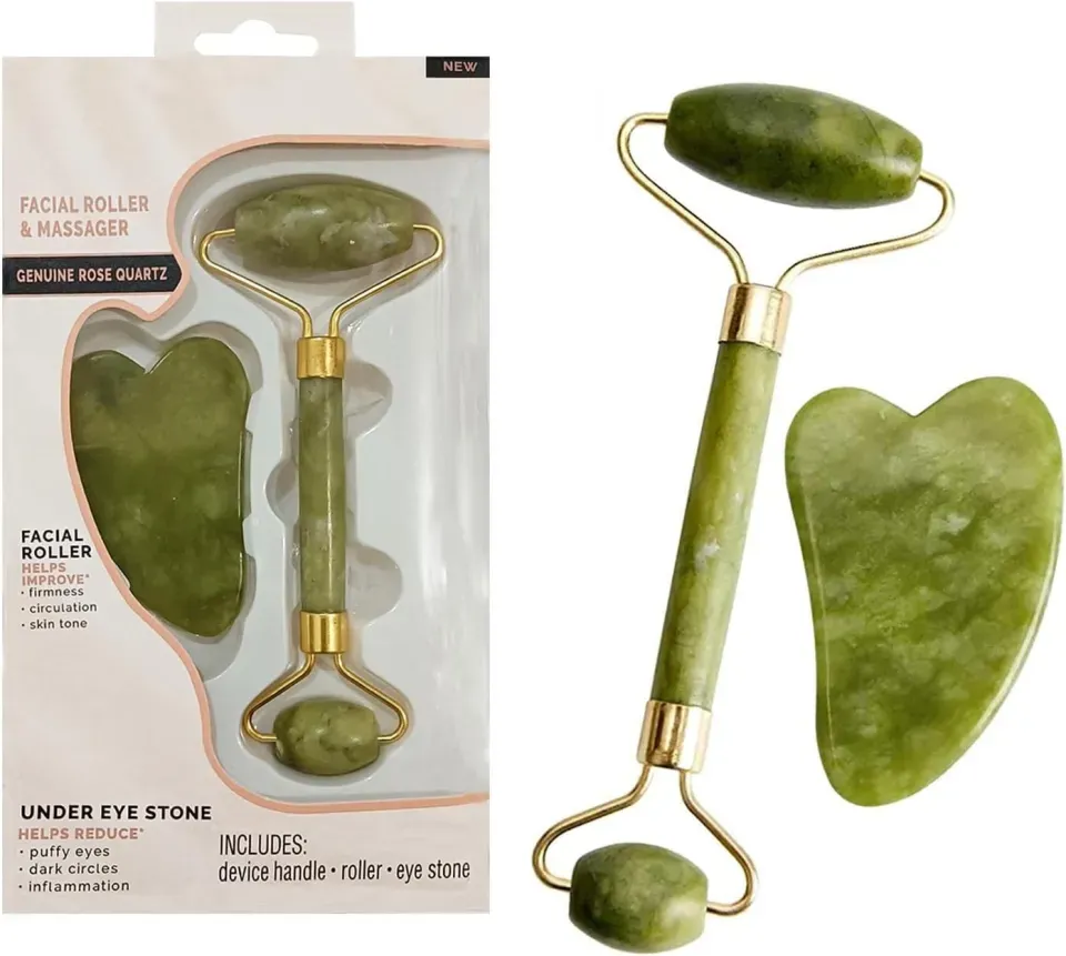 Set Includes: One dual-ended jade roller and one gua sha stone.