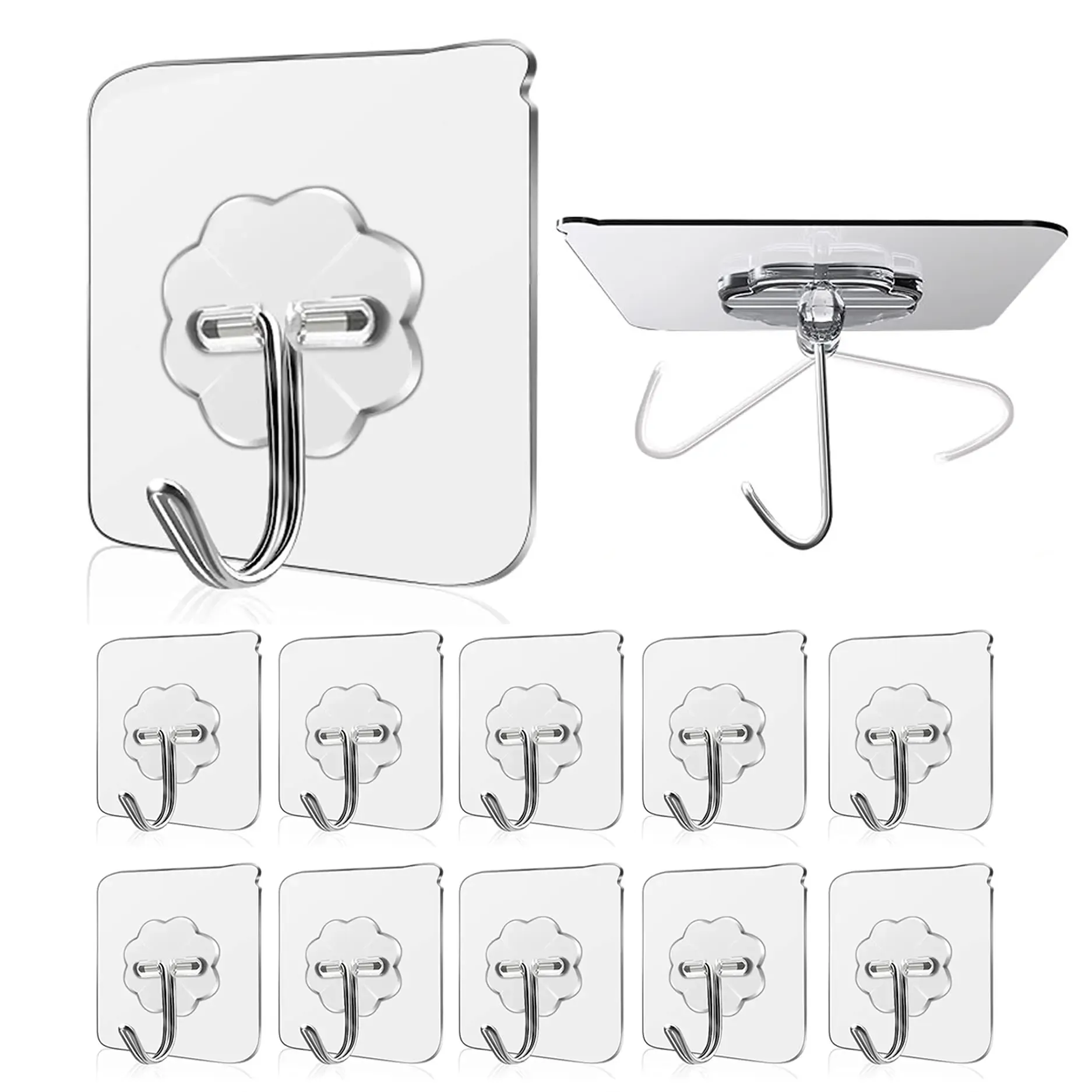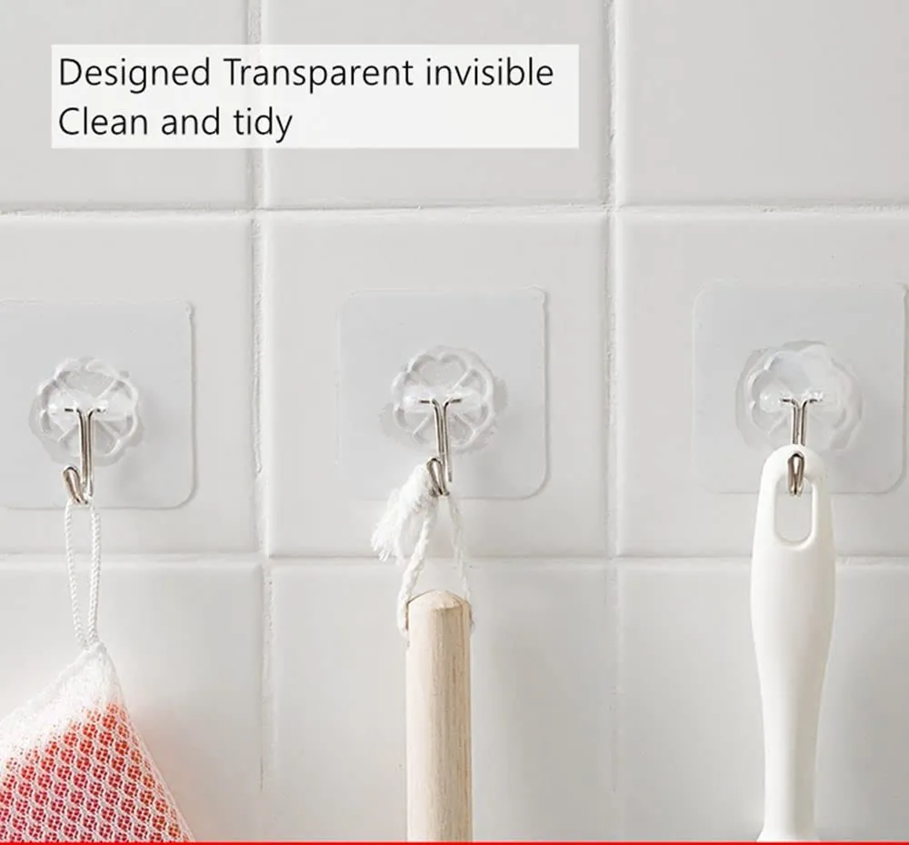 Strong adhesive wall hooks – pack of 10 for hassle-free hanging in any room.