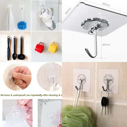 Keep your space organized with this Pack of 10 Adhesive Single Hooks, perfect for hanging keys, towels, utensils, and more. Designed with strong adhesive backing, these hooks stick firmly to smooth surfaces like tile, glass, metal, and wood. They are waterproof, reusable, and easy to install without drilling or damaging your walls. Ideal for kitchen, bathroom, bedroom, office, and more – a must-have solution for everyday home organization.