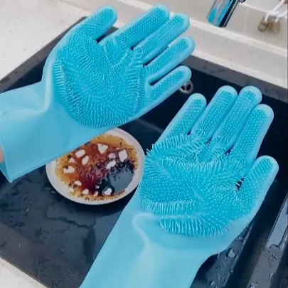 Durable and heat-resistant silicone gloves for kitchen use – ideal for washing, cleaning, and handling hot items.