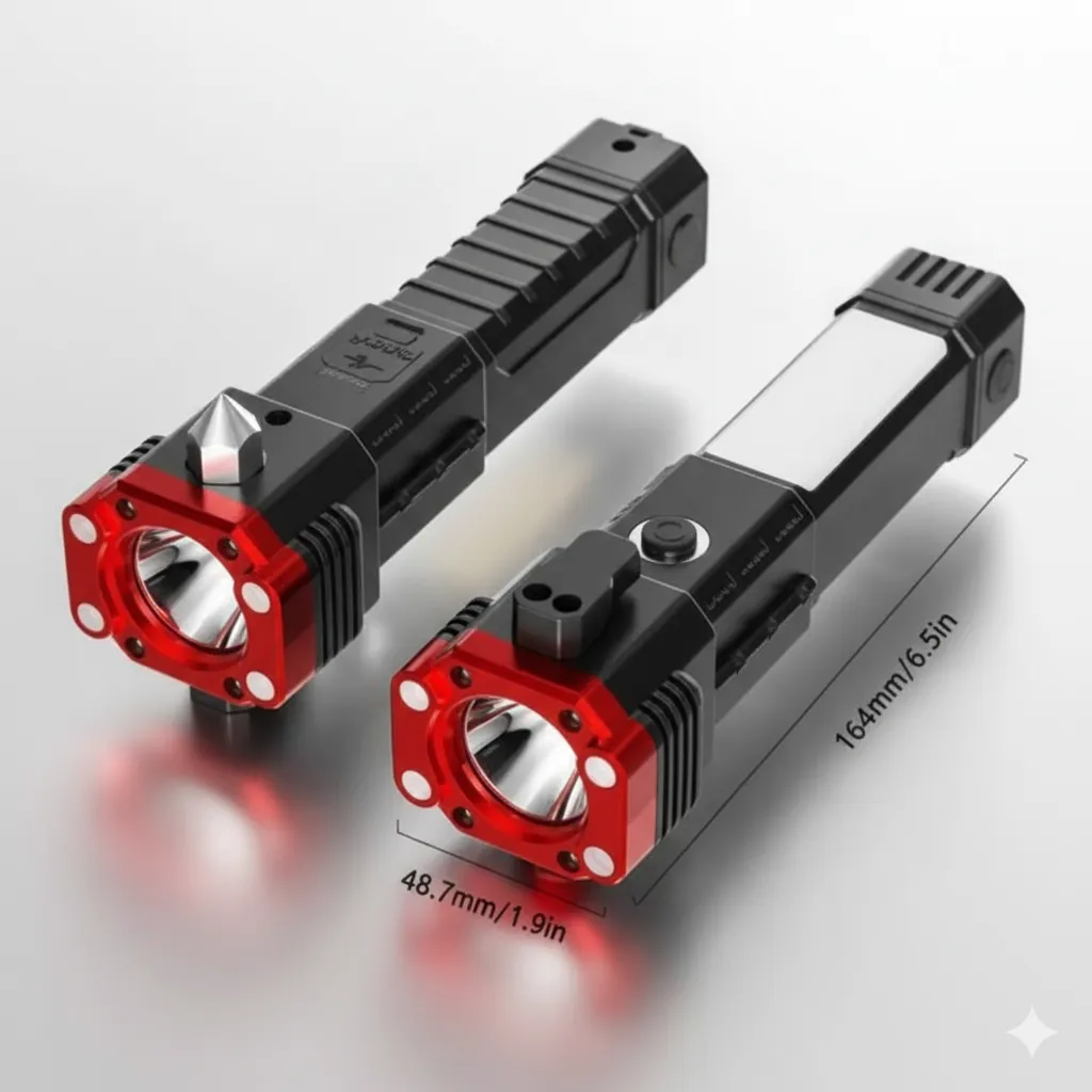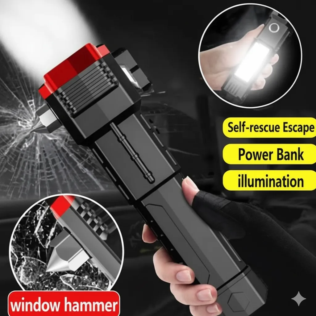 Functionality: LED Torch, Power Bank, Window Hammer, Seatbelt Cutter, Illumination Modes.