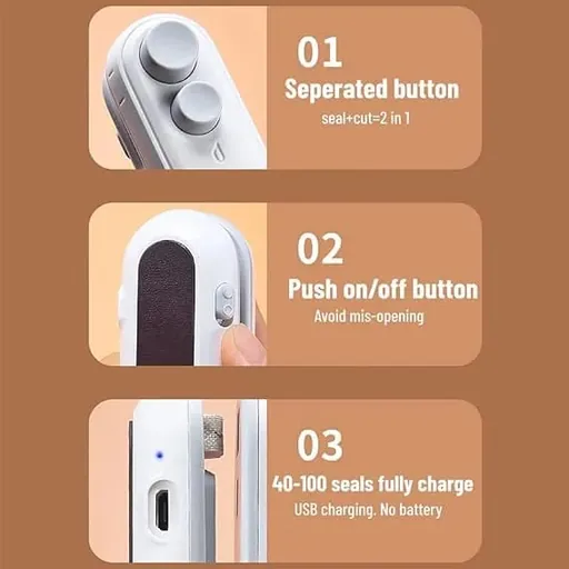 - Easy to Use: Simple operation for both sealing and cutting. Just press to seal and slide to cut.