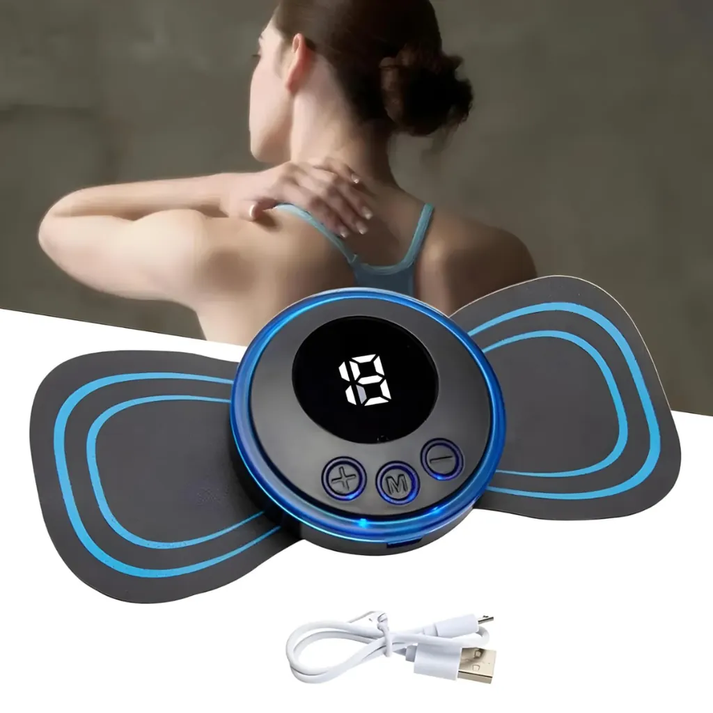 Rechargeable EMS butterfly massager for body toning, pain relief, and muscle stimulation. Compact, wireless, and easy to use.