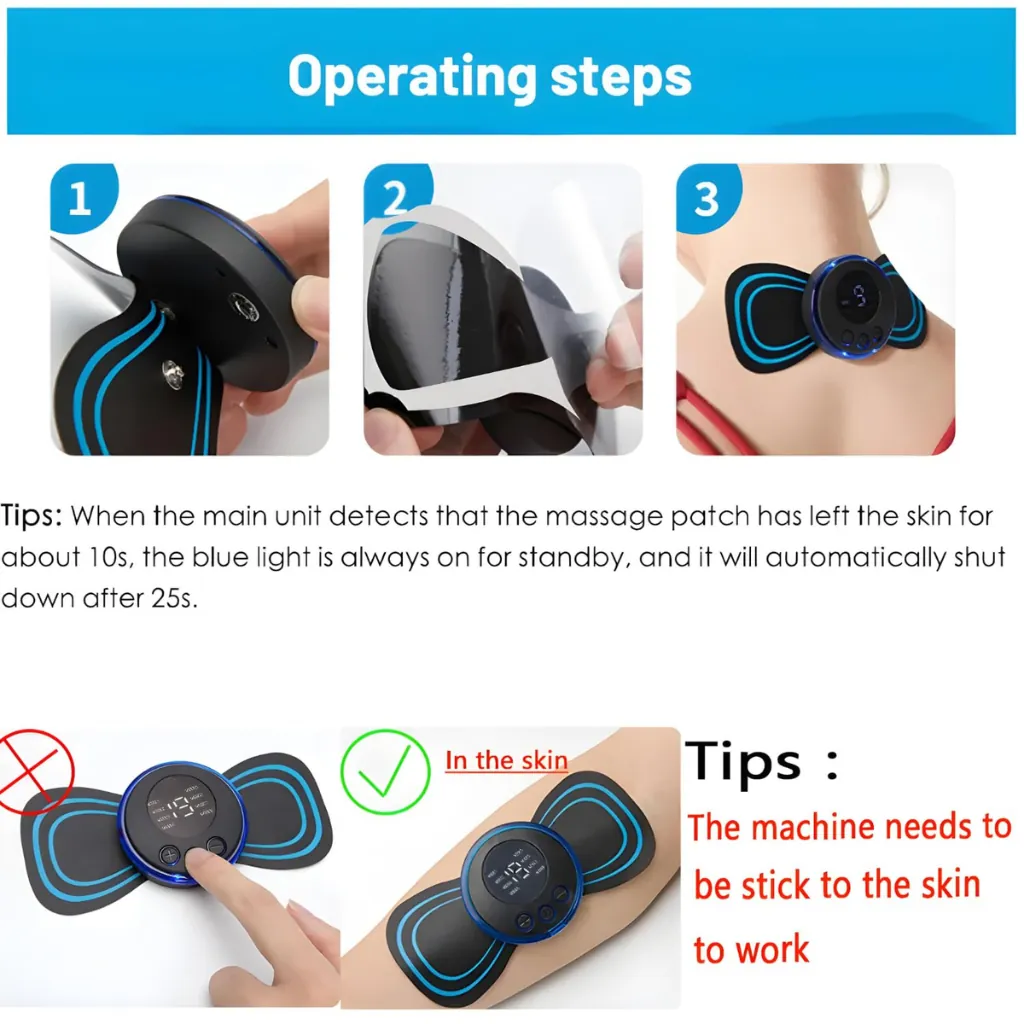 Experience convenient body relaxation and toning with the Rechargeable EMS Butterfly Massager. This compact, wireless device uses Electrical Muscle Stimulation (EMS) to target muscles, reduce fatigue, relieve pain, and promote toning – all from the comfort of your home.