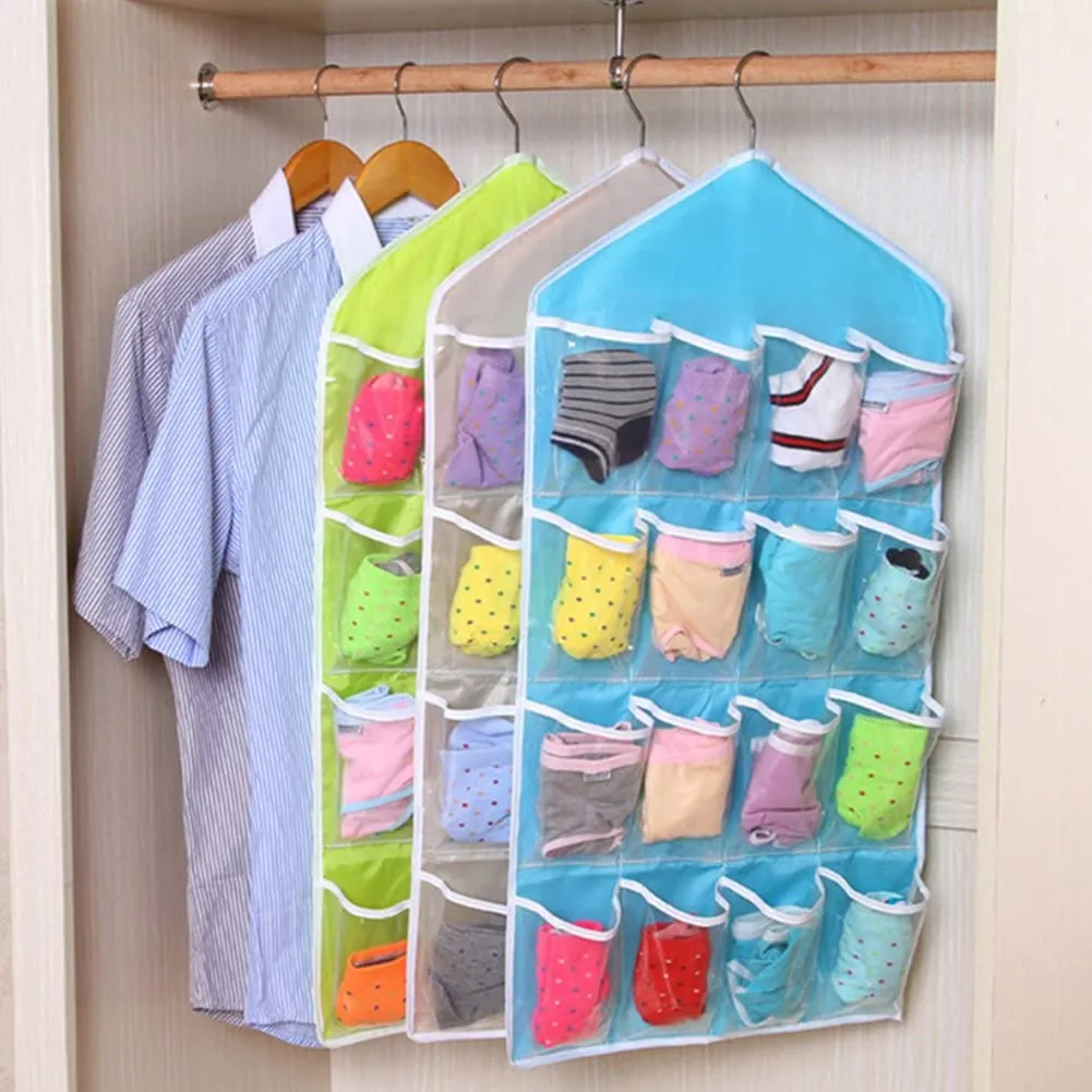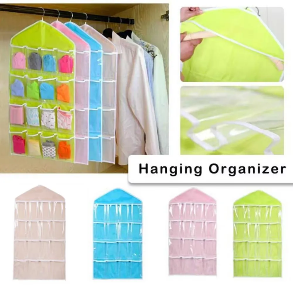 ptimize your closet space with this practical 16 pocket hanging organizer. Designed to neatly store socks, underwear, , jewelry, and other small items, it features clear pockets for quick and easy identification of contents. Simply hang it over your closet rod or door to instantly create additional storage and keep your belongings organized and within reach.
