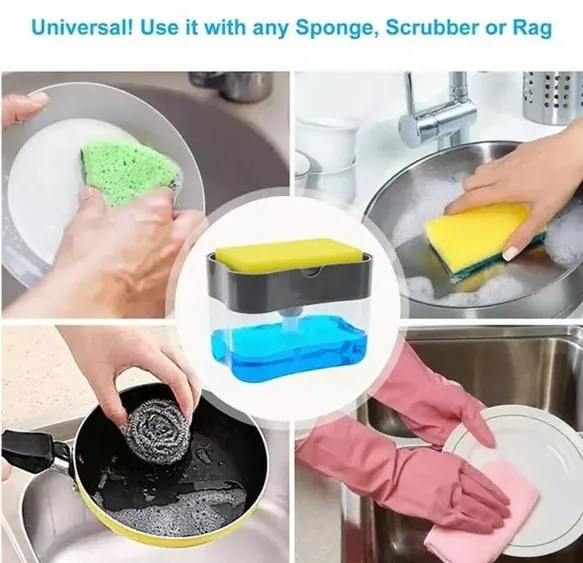 Organize your kitchen sink with this practical sponge caddy and soap dispenser combination - a convenient 2-in-1 solution.It keeps your dish soap and sponge neatly organized in one place, making dishwashing more efficient and your sink area tidier. Simply press down on the sponge to dispense the perfect amount of soap directly onto it.
