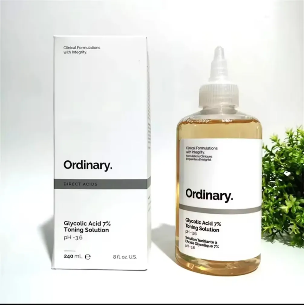 Discover radiant, smoother skin with The Ordinary's Glycolic Acid 7% Toning Solution. This powerful exfoliating toner is formulated with 7% glycolic acid, an alpha hydroxy acid (AHA), to gently but effectively slough off dead skin cells, revealing a brighter and more even complexion. The formula also includes a Tasmanian Pepperberry derivative to help reduce irritation associated with acid use, along with ginseng root and aloe vera to soothe and calm the skin. This toner is designed to target textural irregularities, dullness, and uneven skin tone, promoting a healthy-looking glow. It's an essential step in your skincare routine to prepare your skin for subsequent serums and moisturizers. Ideal for all skin types, this toner helps you achieve visibly clearer, smoother, and more refined