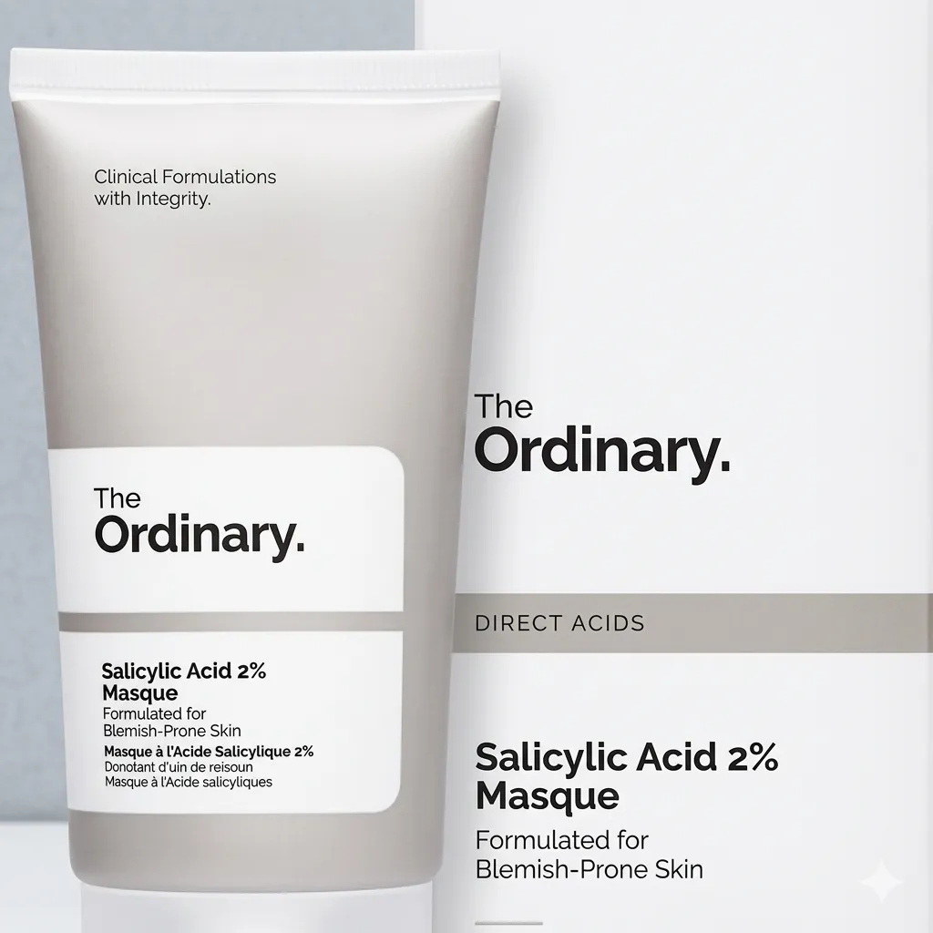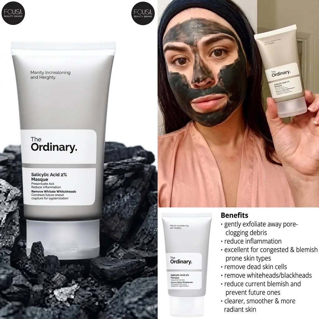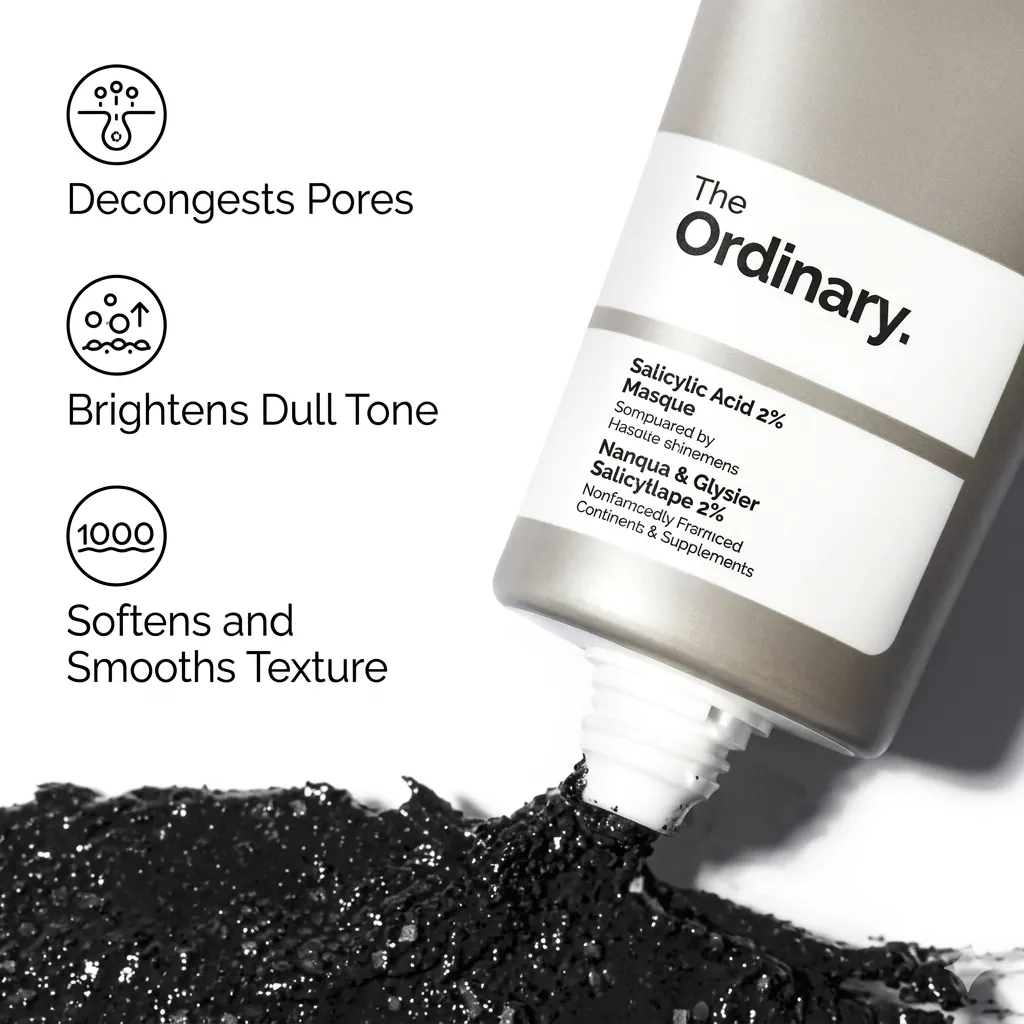 The Ordinary Salicylic Acid 2% Masque is a charcoal and clay mask for blemish-prone skin, providing deep cleansing and exfoliation to target pores and improve skin clarity."