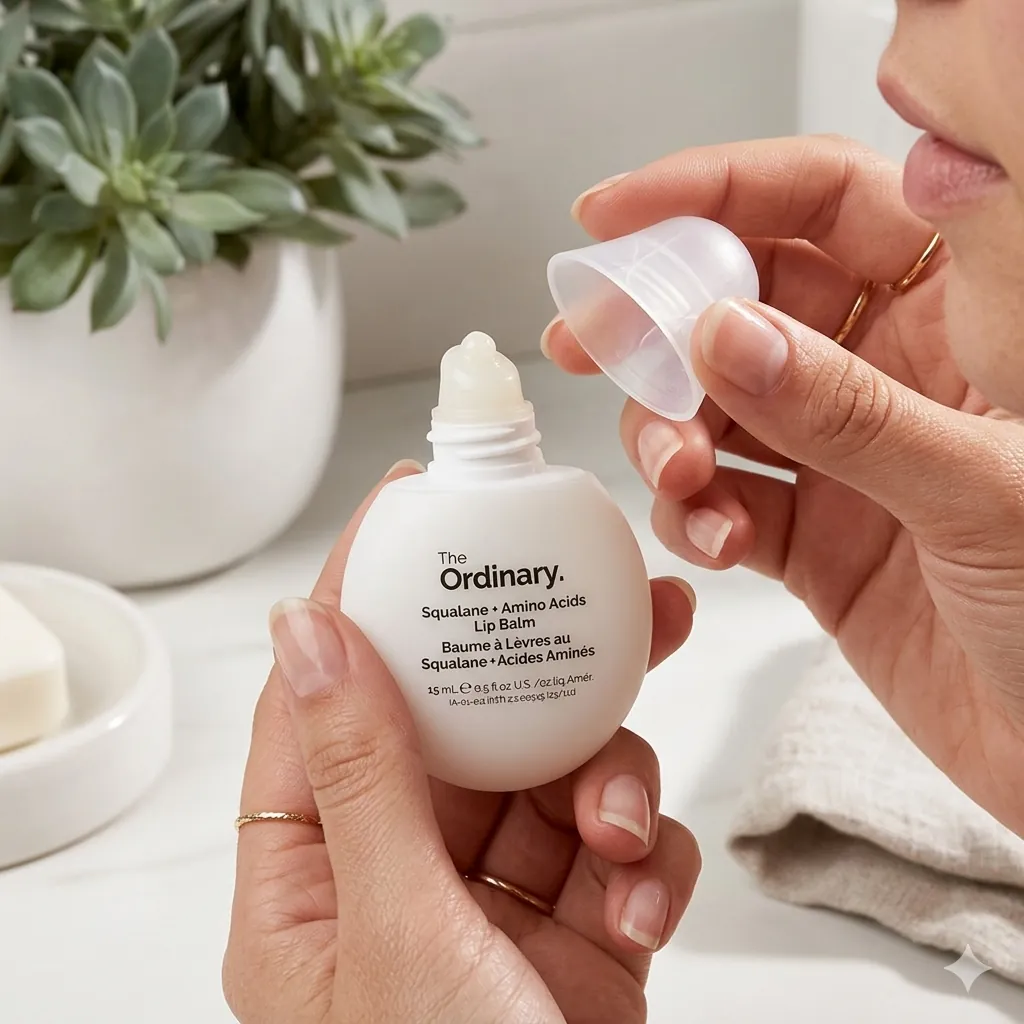 The Ordinary Squalane + Amino Acids Lip Balm deeply hydrates and repairs dry lips with Squalane and Amino Acids for a soft, smooth feel."