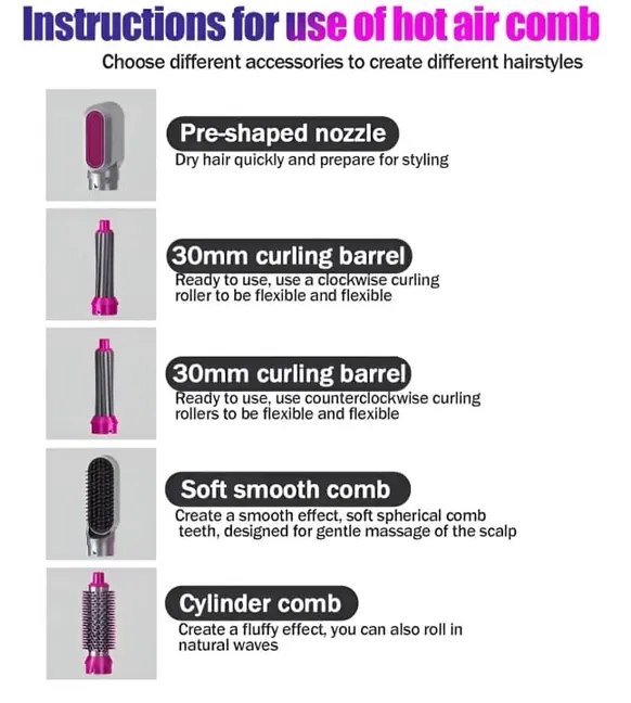 Achieve a variety of hairstyles with just one tool using the TP-5+1 5-in-1 Hot Air Styler and Dryer. This versatile styling tool combines the power of a hair dryer with the functionality of multiple styling brushes. It comes with interchangeable attachments for drying, straightening, creating curls, adding volume, and smoothing. Enjoy salon-quality results at home with this convenient and efficient all-in-one hair styler.