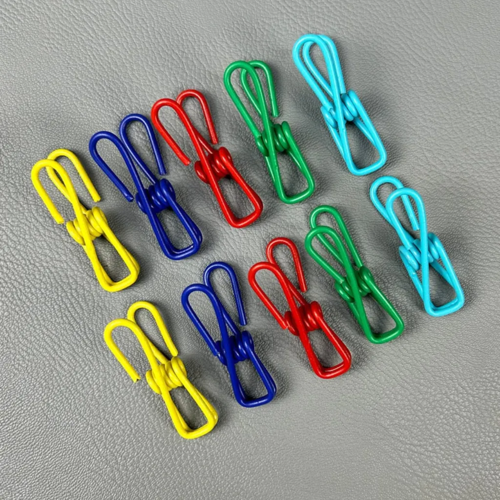 Vibrant Multicolor Stainless Steel Clothes Drying Clips: Durable & Rustproof Laundry Pegs (Set of 12)