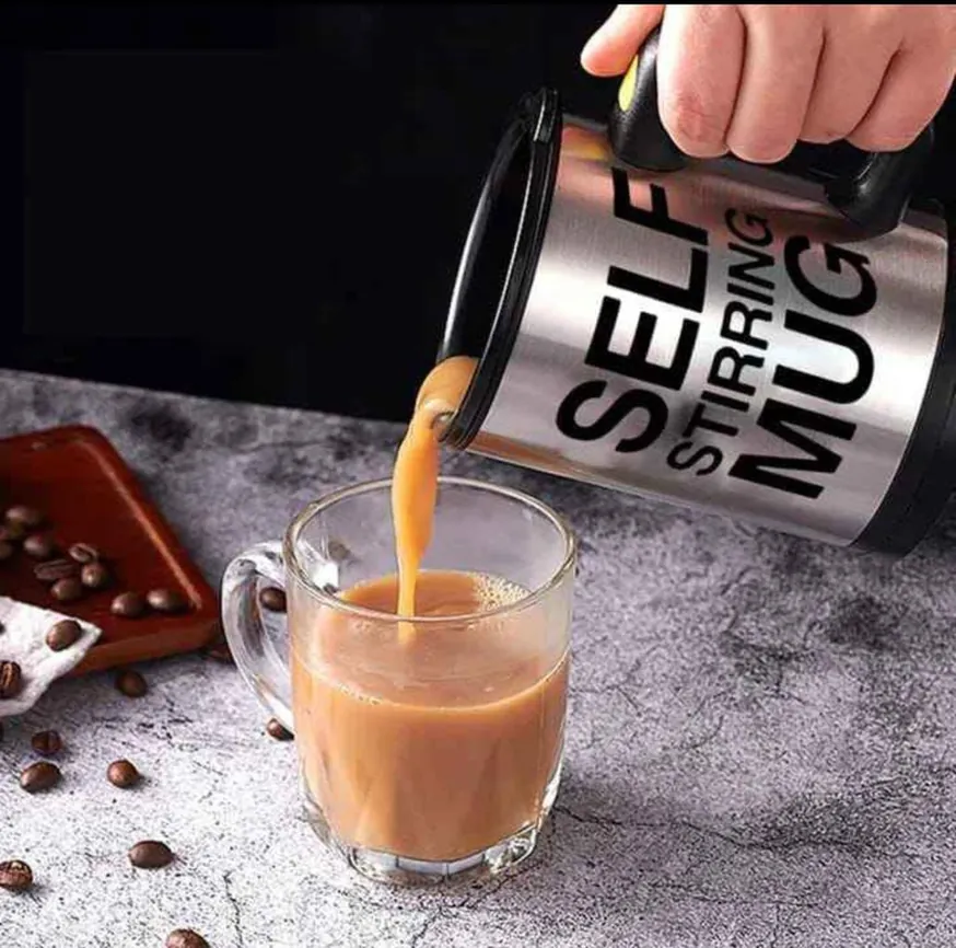 Short Description: Automatic self-stirring mug for perfectly mixed drinks. Stainless steel, insulated, leak-proof lid. Effortless blending at the touch of a button.